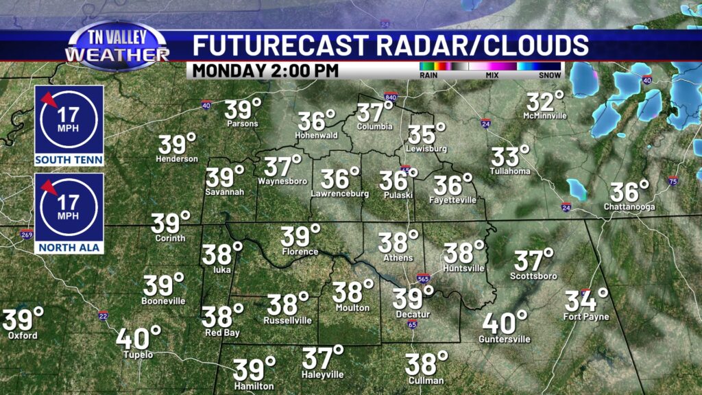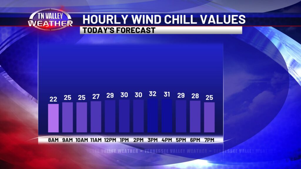 Bundle up and layer up today, it’s cold! Air temps will struggle to make it into the lower 40s this afternoon. Wind gusts up to 30mph will make it feel colder than it actually is with wind chill values below freezing for the rest of the day.