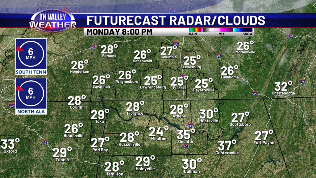 The good news is a lot of us will see sunshine, however the further east you are in the viewing area, the more cloud cover you see. While I think most of the moisture today stays east of our viewing area, I can’t completely rule out a few snow flurries around and east of I-65. As we’ve been saying for the last several days, no impacts or accumulation is expected. Expect a clear sky tonight as winds eventually die down. Air temperatures tonight will get down even cooler, into the upper teens to lower 20s!
