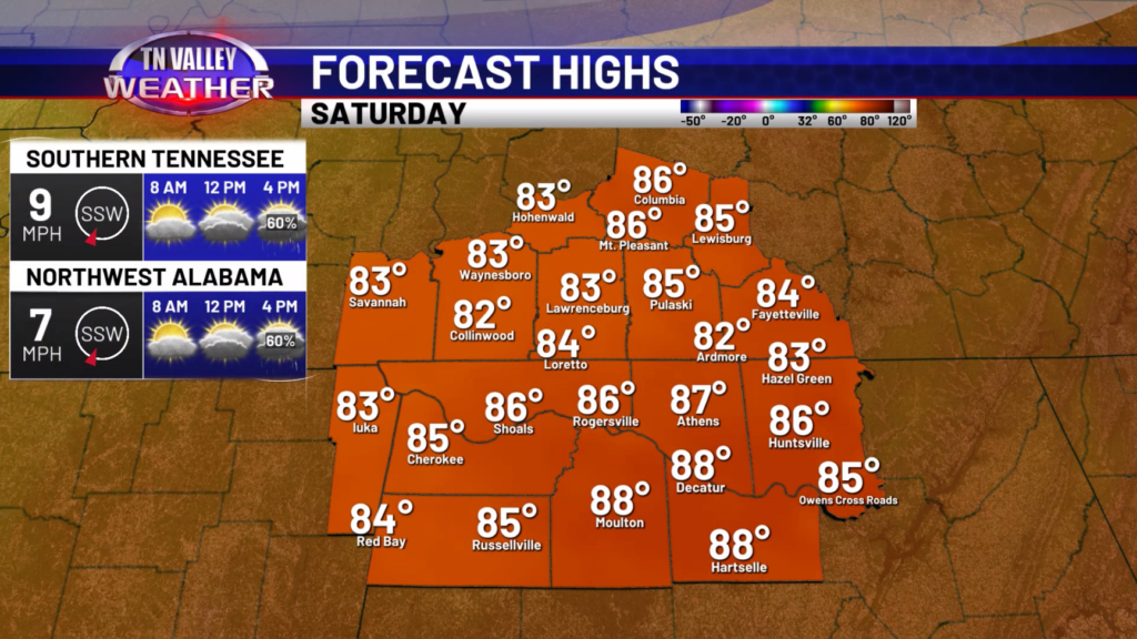 Happy Friday! A very warm to even hot day is expected as we round out the workweek. Highs will be in the upper 80s to around 90 today with mostly sunny skies. Definitely a little summer preview for this Friday in April! Tonight, lows will drop into the 60s overnight. Tomorrow, the morning hours should be dry but showers and storms will start to impact our area around noon-2pm. Highs will be in the low to mid 80s.