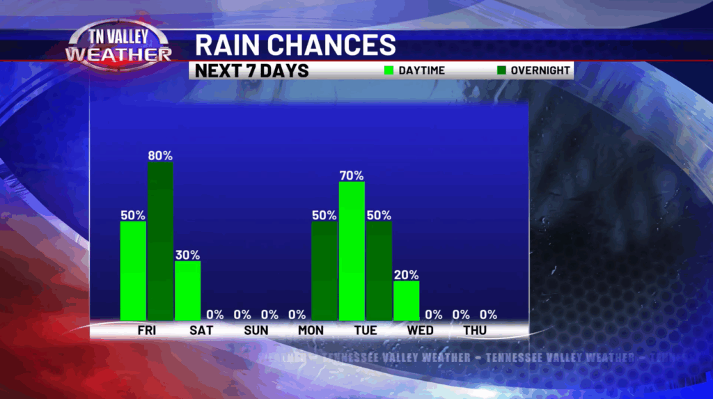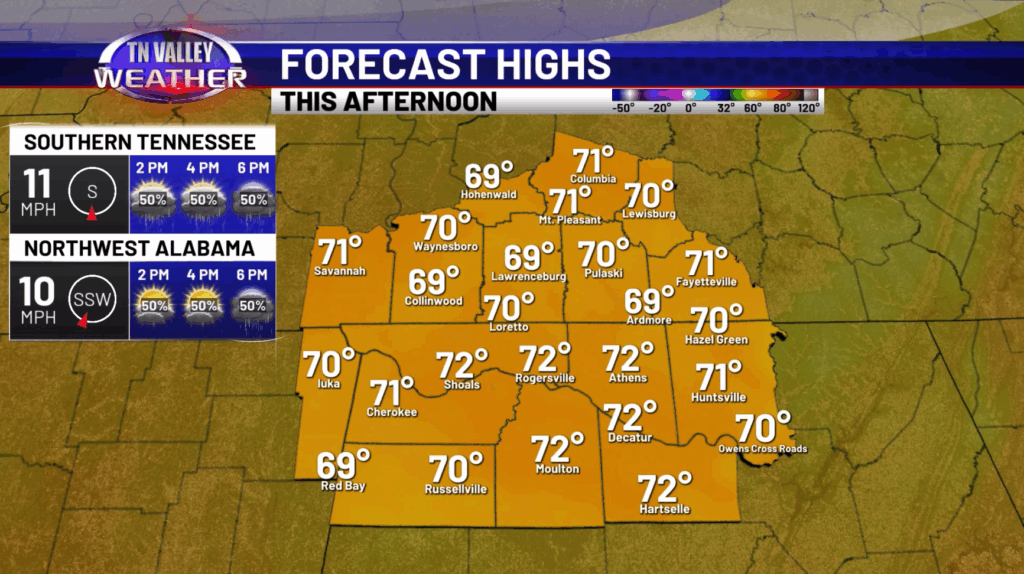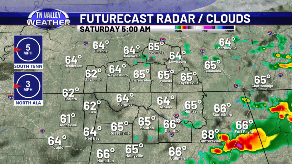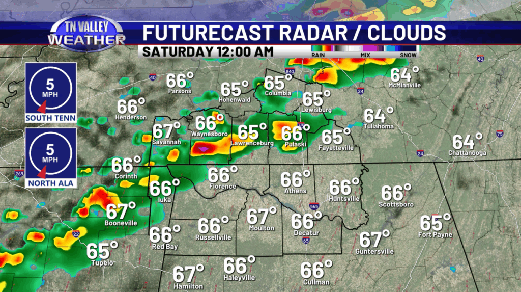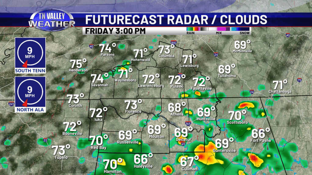 Happy Friday! Another day filled with clouds and periods of rain and storms can be expected. However, there will likely be a good chunk of the day where we are just cloudy with only a handful of showers around. Highs today will be in the upper 60s and lower 70s with breezy southwesterly winds around 10-15mph, gusting to 25mph at times. Overnight tonight, more rain and storms are expected with lows in the 50s and lower 60s.