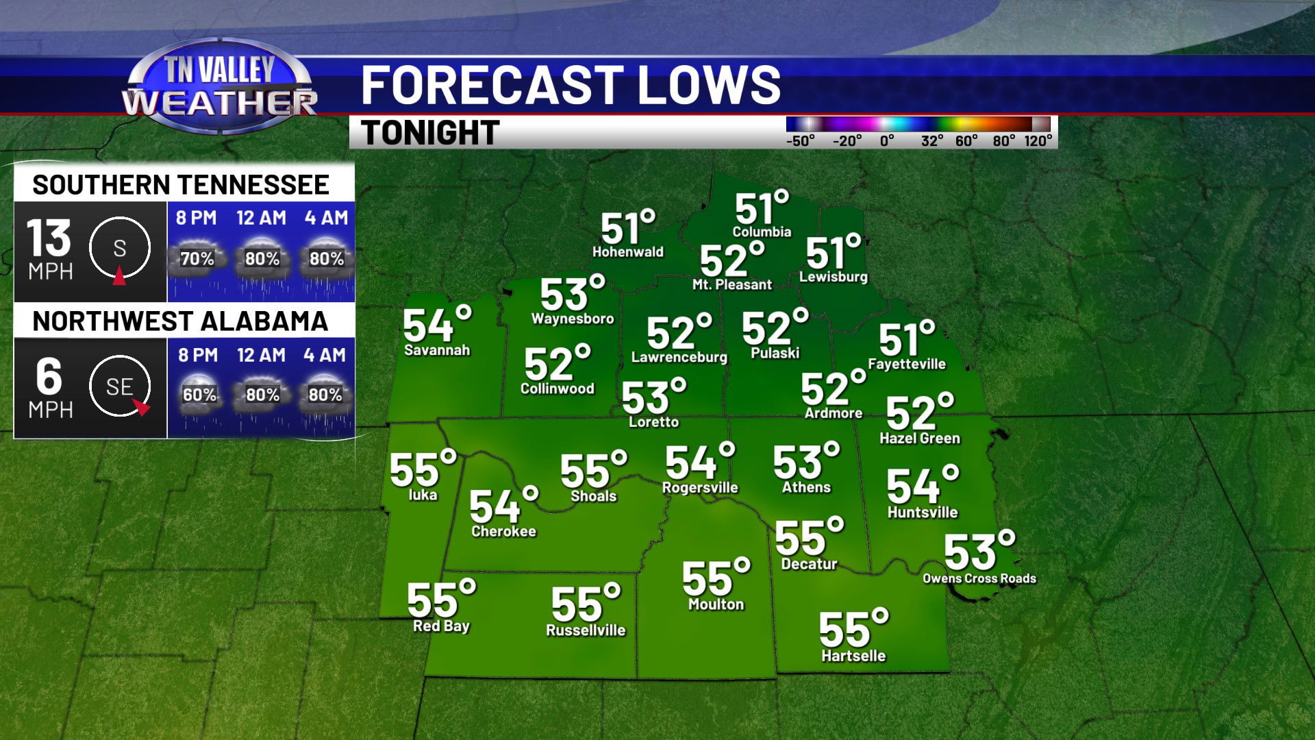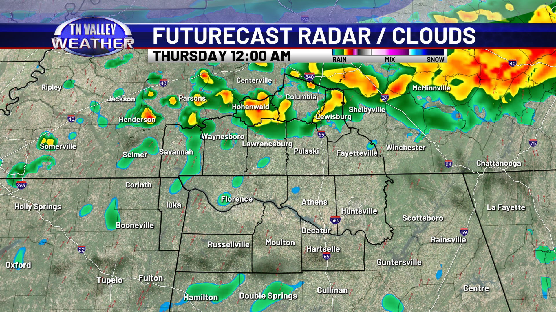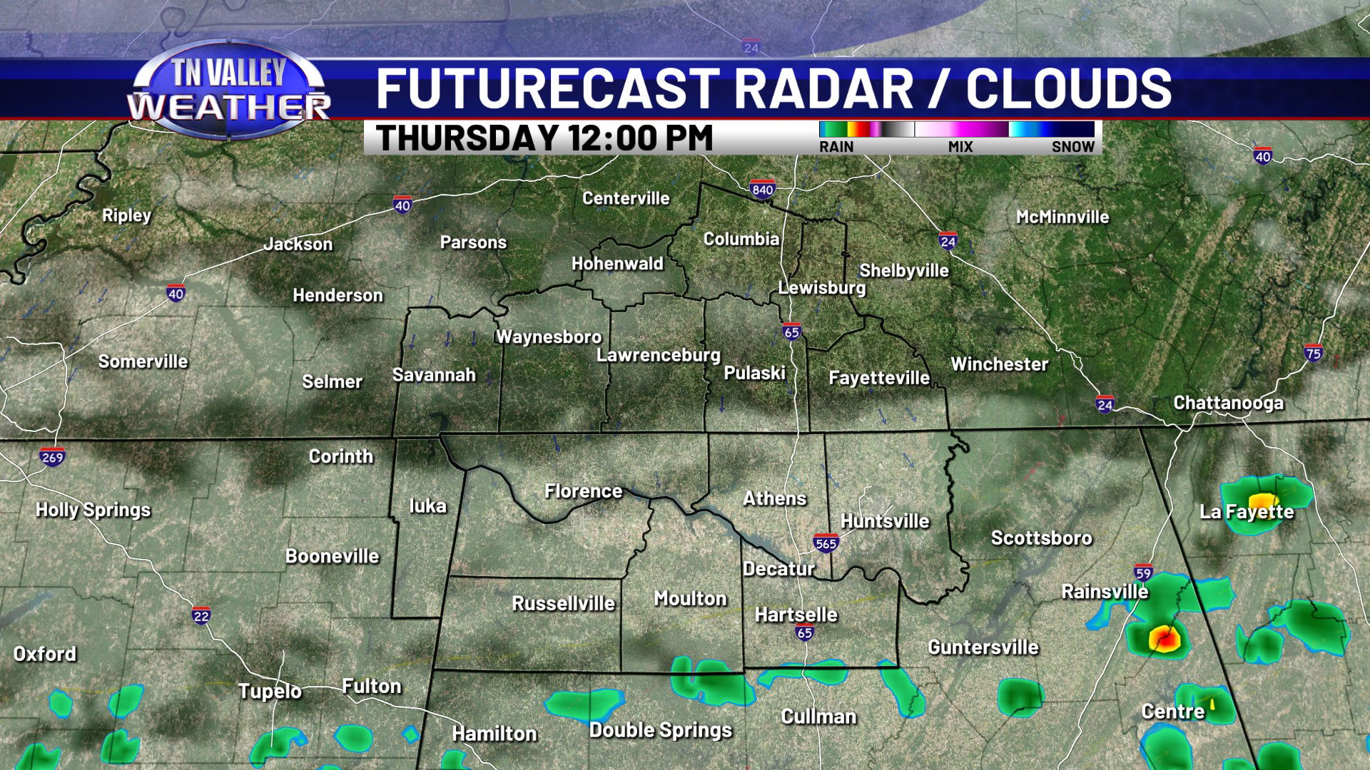 Showers will become more likely as we head into the overnight. Temperatures will stay on the warm side too, with clouds and our breezy south wind continuing. Overnight lows will stay in the low to mid 50s. Showers and storms are most likely during the morning hours of Thursday before shifting south into the afternoon. No severe storms are expected, but some locally heavy rainfall and maybe some isolated 30 mph wind gusts are certainly possible. We may have a lingering shower into the afternoon, but it looks like the majority of the rain is south of us and we return to partially clearing skies by midday and the afternoon. Because of this, we’ve had to bump daytime highs up a little for Thursday, into the mid 60s with a bit more sunshine in the afternoon. Areas north of Highway 64 in southern Tennessee will likely stay closer to the lower 60s though. With more breaks in the cloud cover overnight, we will be a little cooler. We’re still not going to be actually cold though, with no real cold air behind this front. Overnight lows for Thursday night will range from the upper 30s to the mid 40s.