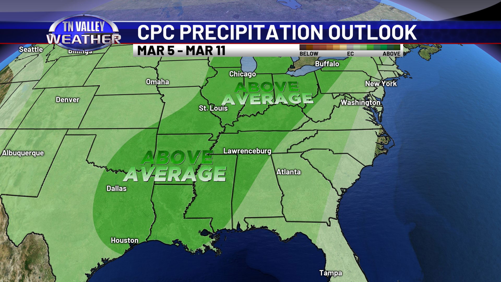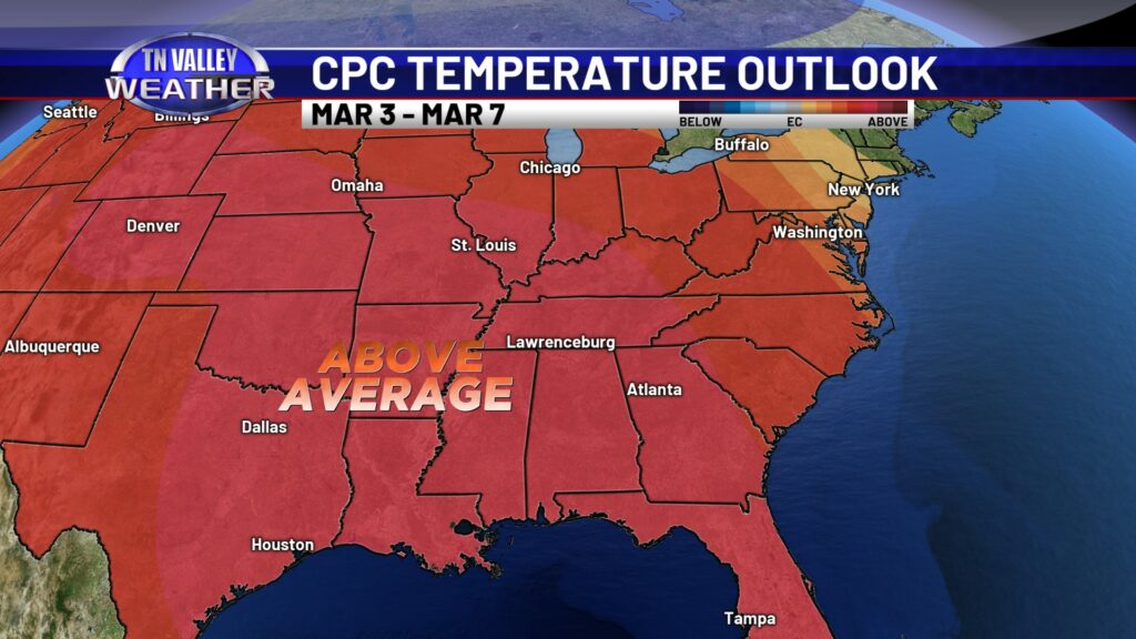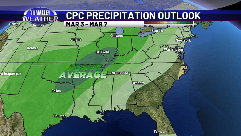 Looking ahead into the extended range via the 6-10 Day and 8-14 Day outlooks from the NWS Climate Prediction Center, it’s looking like we may be in a pattern that favors above average precipitation and above average temperatures as we head through the first third or so of March. While it’s too far out to hone in on any potential storm threats, and we don’t currently see anything that looks like an obvious problem, we will be heading into the primary spring part of our severe weather season as we shift into March. Above average precipitation + above average temperatures this time of year can sometimes mean severe weather troubles. While we don’t see obvious signals for that, and it’s too far out to be concerned anyway, we’ll be watching closely as we move forward!