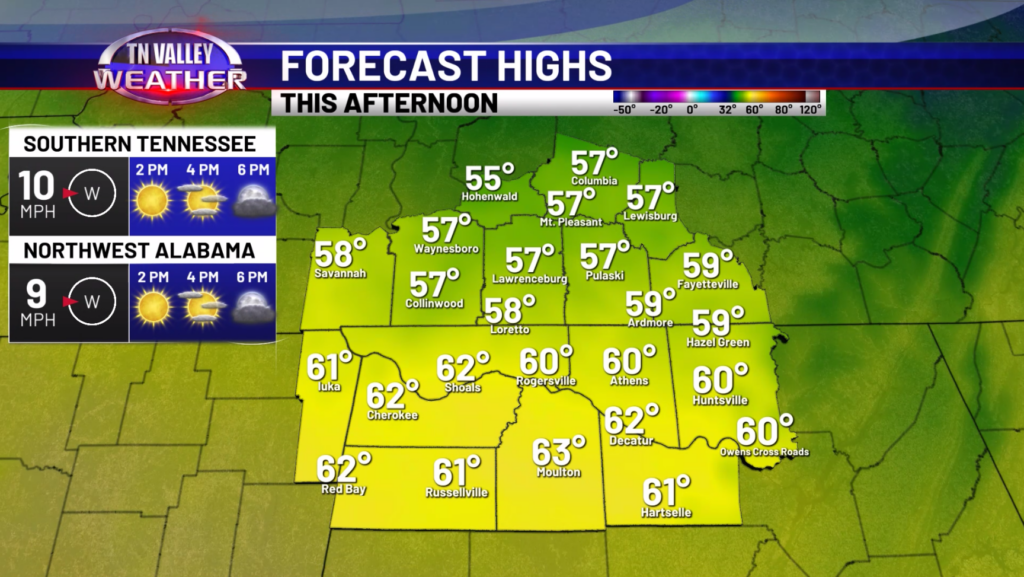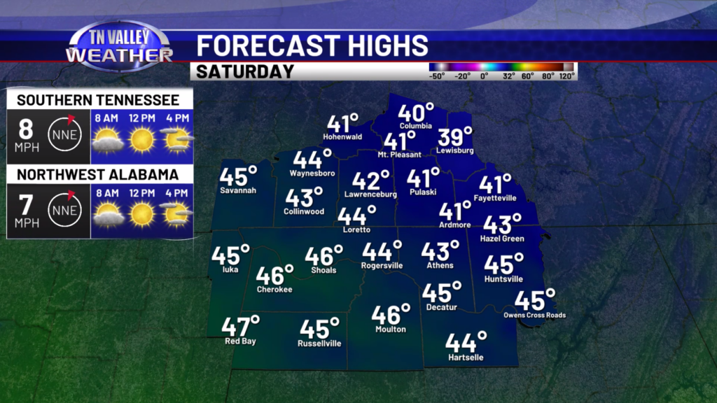 On Saturday and Sunday, we remain dry but the temperatures will go on a bit of a roller coaster. Highs will be in the 40s tomorrow, but on Sunday we will rise back into the upper 50s and lower 60s.