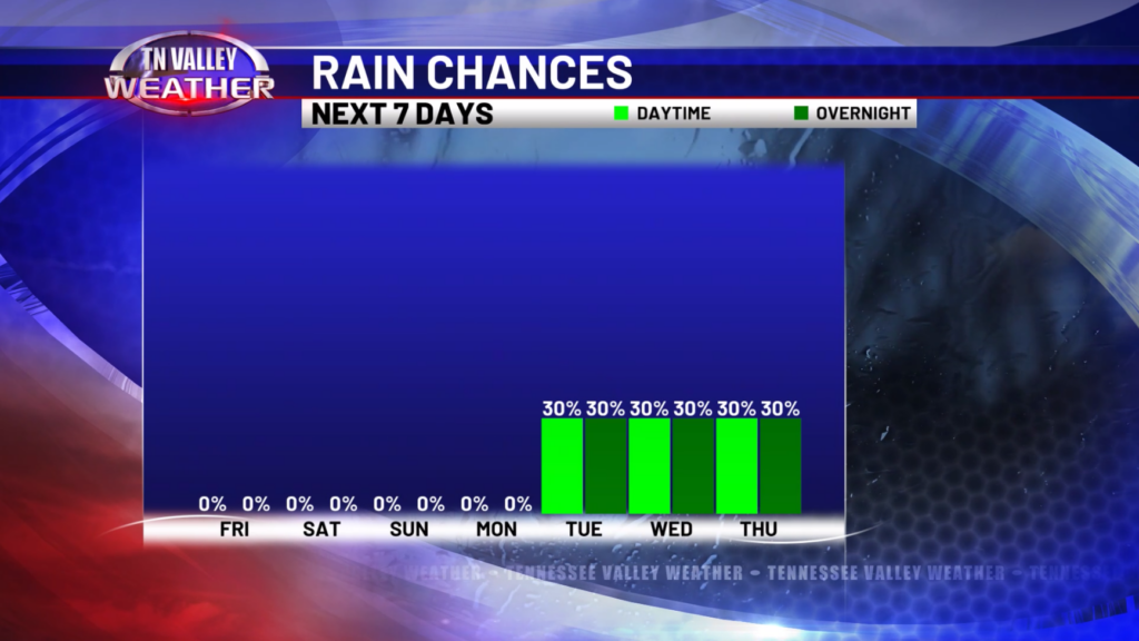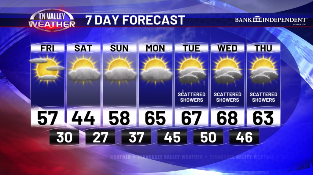 For next week, we will see our Spring like weather make an appearance! Highs will reach the upper 60s and lower 70s on Tuesday and Wednesday but there could also be a few showers around. At the moment, we do not expect any widespread rain or storms.