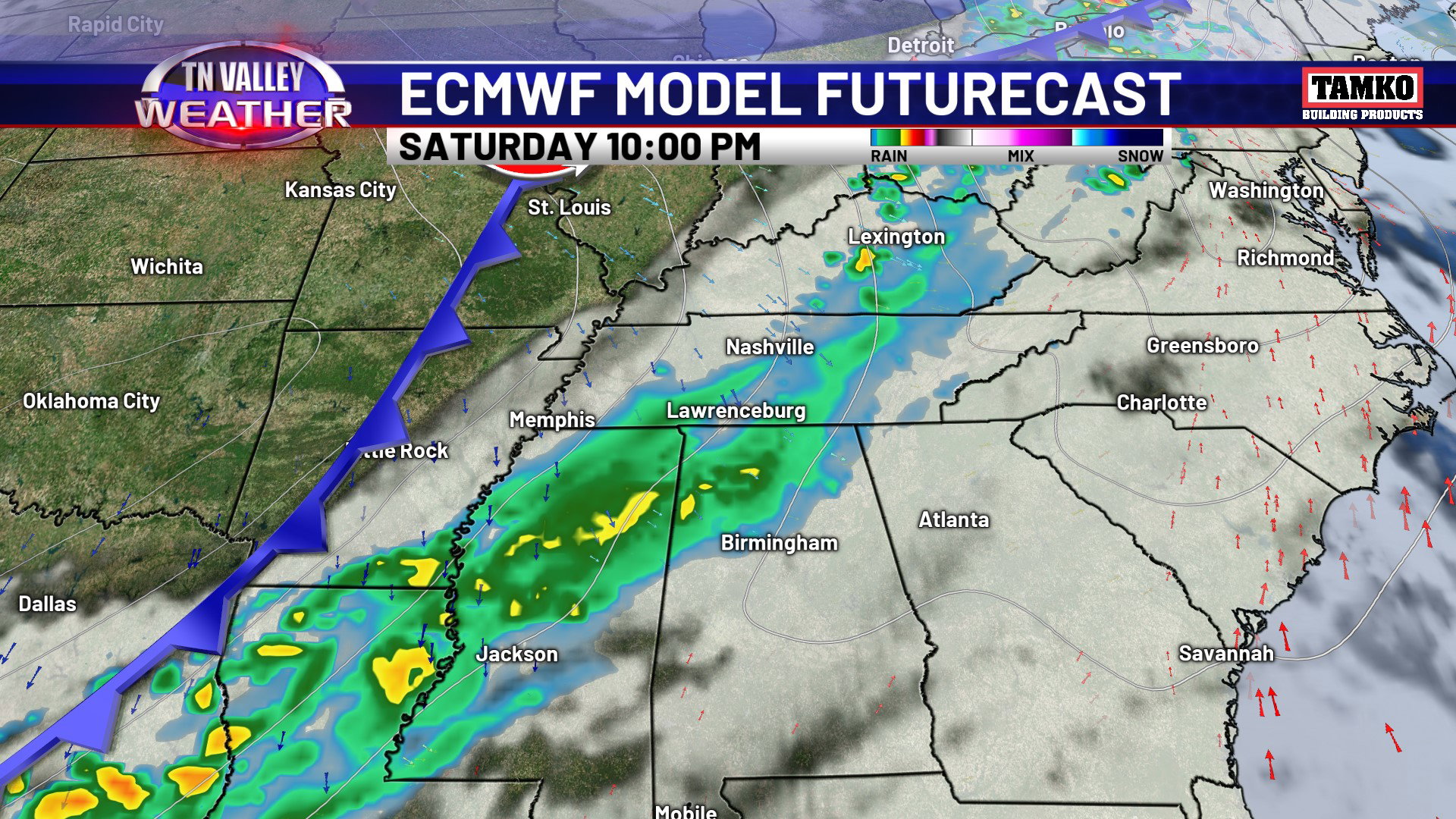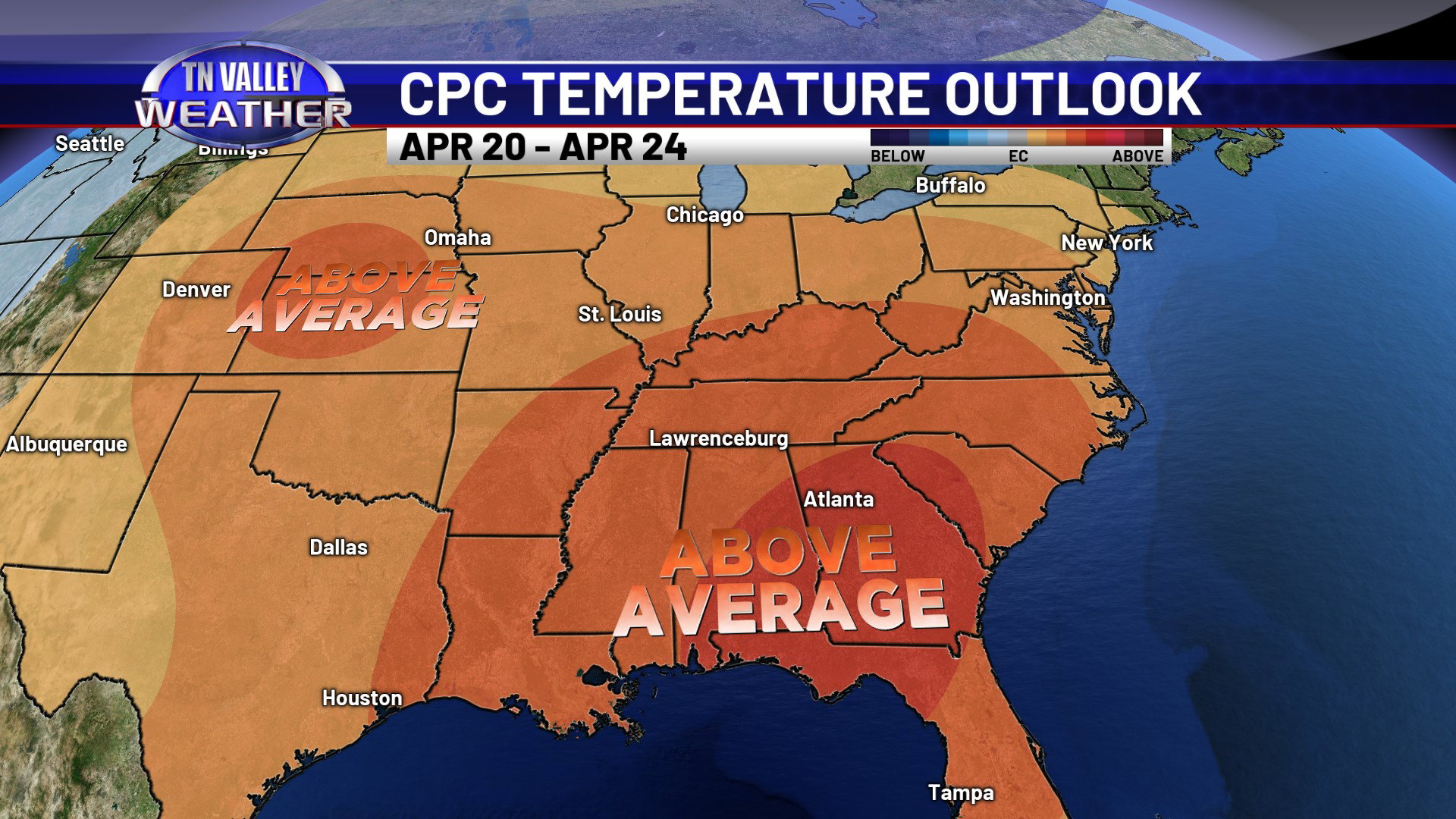 As we head into next week and on through the rest of the month, there are increasing signs that the upper-level ridge over us weakens some and allows the jet stream to shift closer. After the early next week cooler temps, we will likely shift back to above average temperatures again, but there are signals that our chances for showers and storms may increase as weather systems are able to track closer to us. We don’t see any big league rain events right now, but any increase in organized rain chances will help. As this happens, we will be on guard to see if any strong to severe storm chances try to materialize. We are in the climatological heart of our severe weather season here in the Tennessee Valley. For now though, we don’t see any immediate signs of trouble!