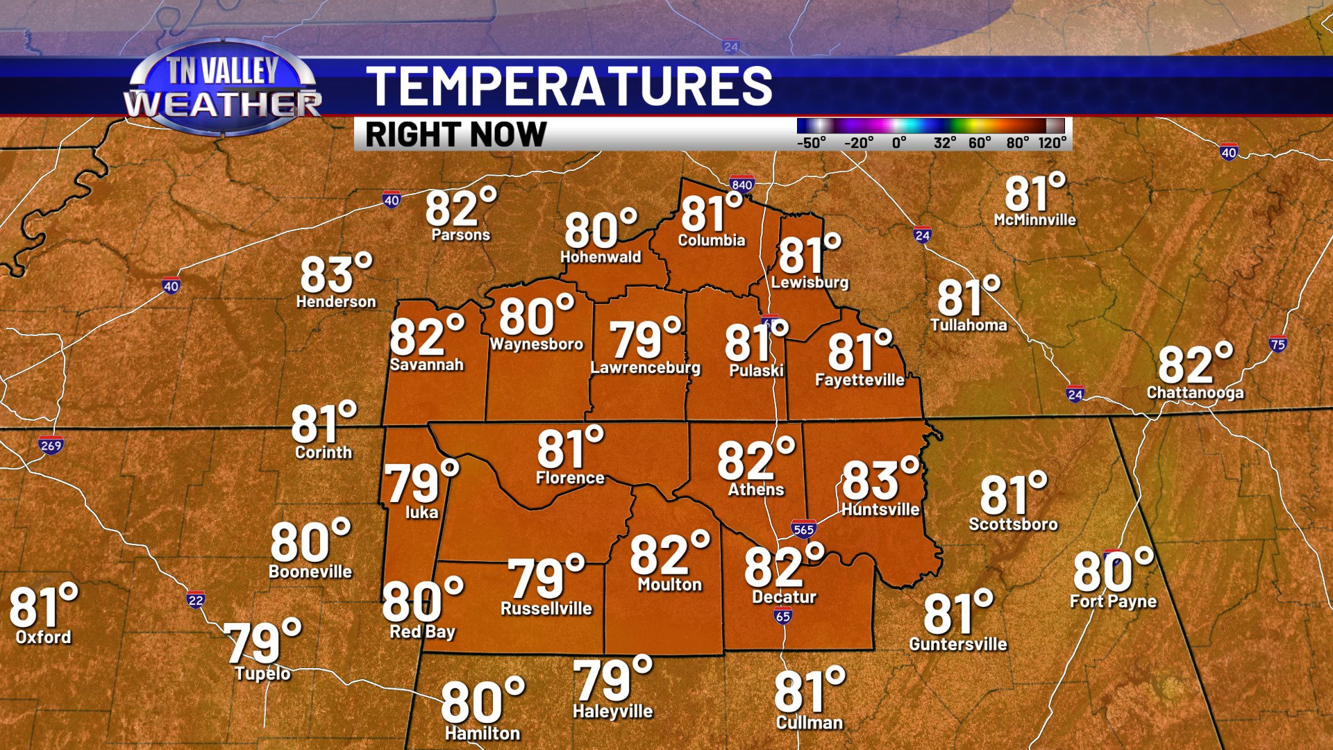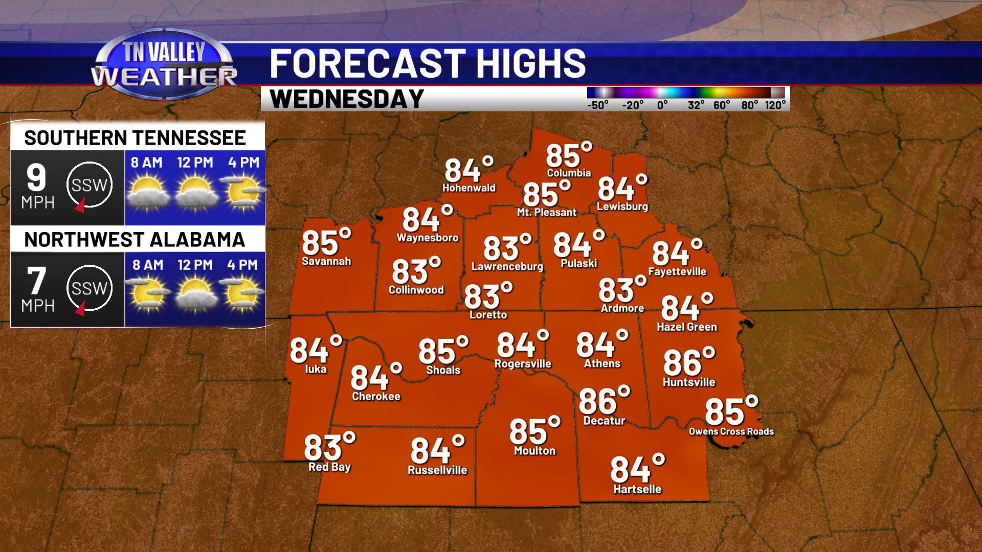 It’s another partly cloudy, breezy, and warm day across the Tennessee Valley on this Tuesday. We don’t have quite as much cloud cover as yesterday, but we still have a fair amount of cumulus cloud activity. All is quiet in terms of any precipitation though. Temperatures this afternoon are climbing into the lower 80s, and we stand to likely climb 2 or 3 more degrees in most areas before the end of the day.