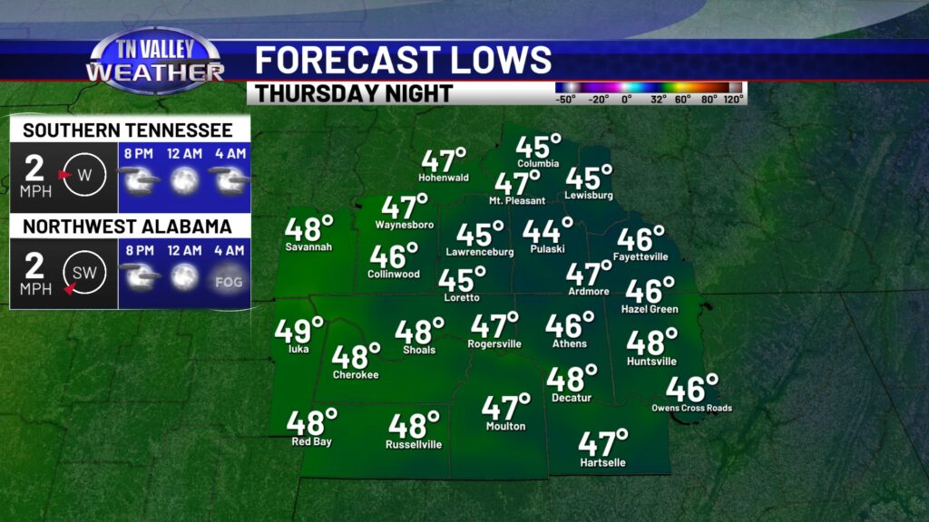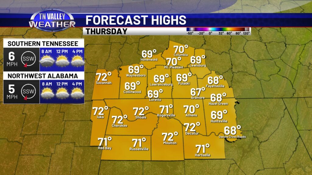 Skies will be mostly clear tonight, but with a southerly wind in place, temperatures won’t be quite as chilly. We will be down to the upper 30s and lower 40s. We begin our warm up in earnest on Thursday with partly cloudy skies. Daytime highs will climb into the upper 60s and lower 70s. Even milder tomorrow night, but a little fog possible after midnight. Overnight lows across the area will be in the mid to upper 40s.