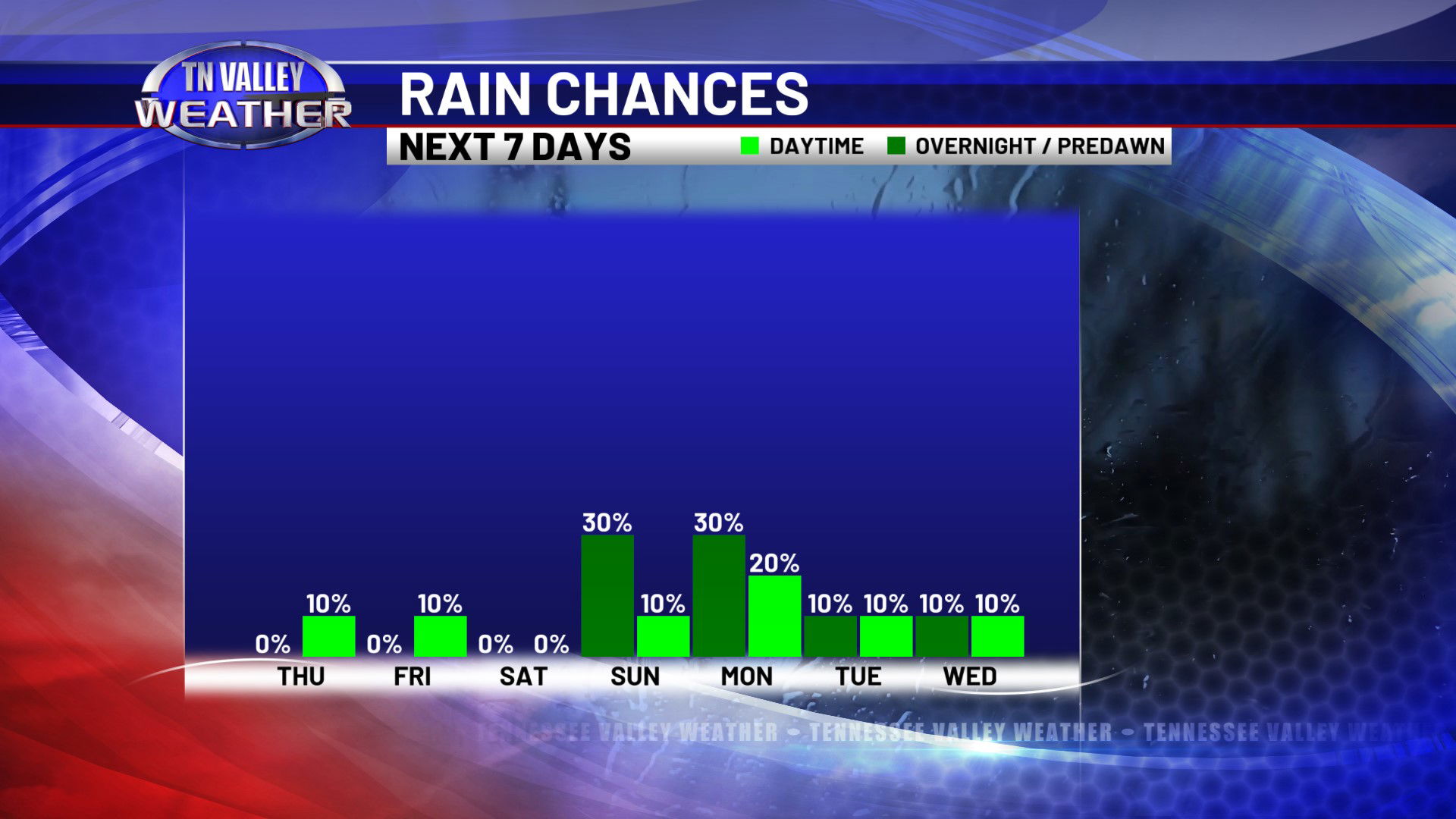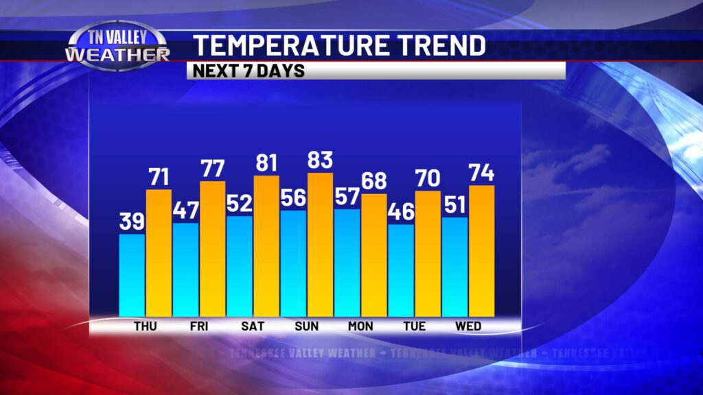 We look to be even warmer as we head into Friday and the weekend as temperatures begin to climb through the 70s into the lower 80s. The next 7 days look mostly quiet. No signs of big weather systems or severe storms! We may have a few spotty showers at times though, with that being most possible Saturday night, Sunday night, and into Monday morning.