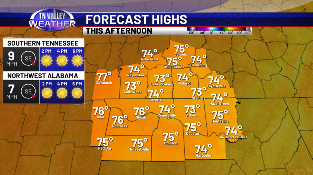 Good Thursday morning! Our warming trend continues today with highs getting back into the mid 70s with mostly sunny skies. Winds will be breezy at times with gusts around 20mph. This evening, our temperatures will gradually fall off into the 60s by the mid evening hours. Lows overnight will be in the mid 50s. Tomorrow, highs will reach the upper 70s and lower 80s.